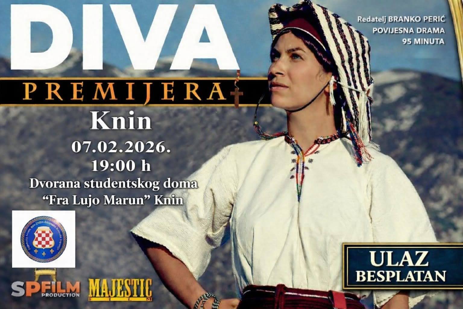 Zajednica Hrvata Bosne i Hercegovine Šibensko-kninske županije s ponosom najavljuje projekcije igranog filma „Diva“ koje će se održati 6. i 7. veljače u Vodicama i Kninu. Riječ je o snažnoj povijesnoj drami koja oživljava lik Dive Grabovčeve, simbola vjere, časti i nepokolebljive hrabrosti.