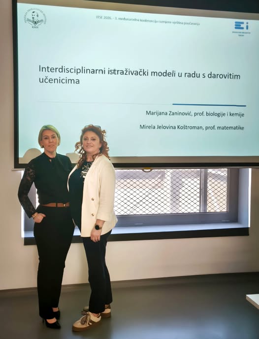 Profesorice Mirela Jelovina Koštroman i Marijana Zaninović iz Srednja škola Lovre Montija Knin sudjelovale su na 3. međunarodnoj konferenciji ITSE – International Teaching Skills Exchange 2026, koja je održana 10. i 11. travnja u Šibenik.